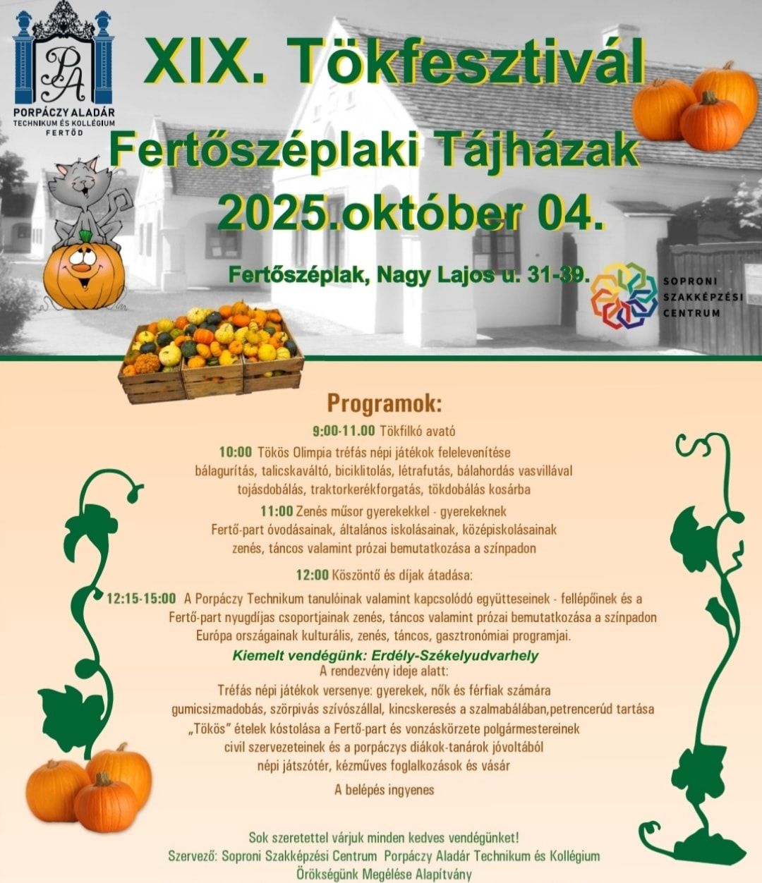 A 2025. október 4-én 9 órától megrendezésre kerülő XIX. Tökfesztivál részletes programjáról a Tovább gombra kattintva tájékozódhatnak a kedves érdeklődők.